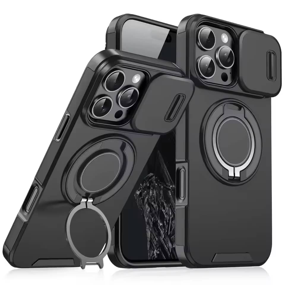 Case for Iphone 17 16 15 14 Pro Max 13 12 Pro plus XR 360 Full Body Rugged Protective Slide Camera Stand Protection Ring Cover